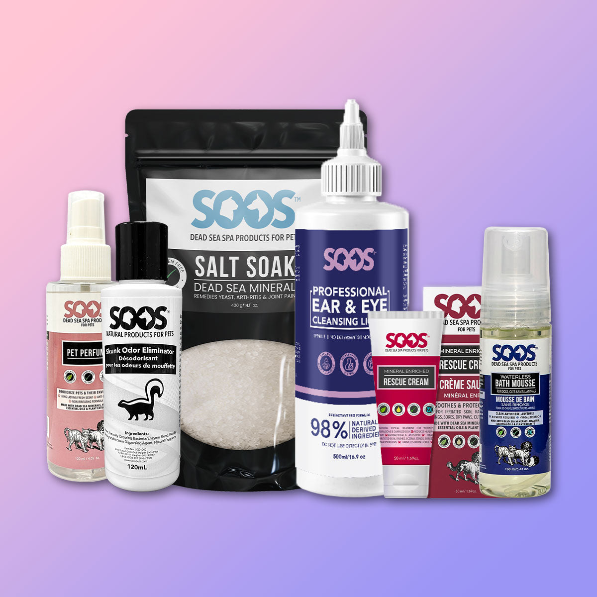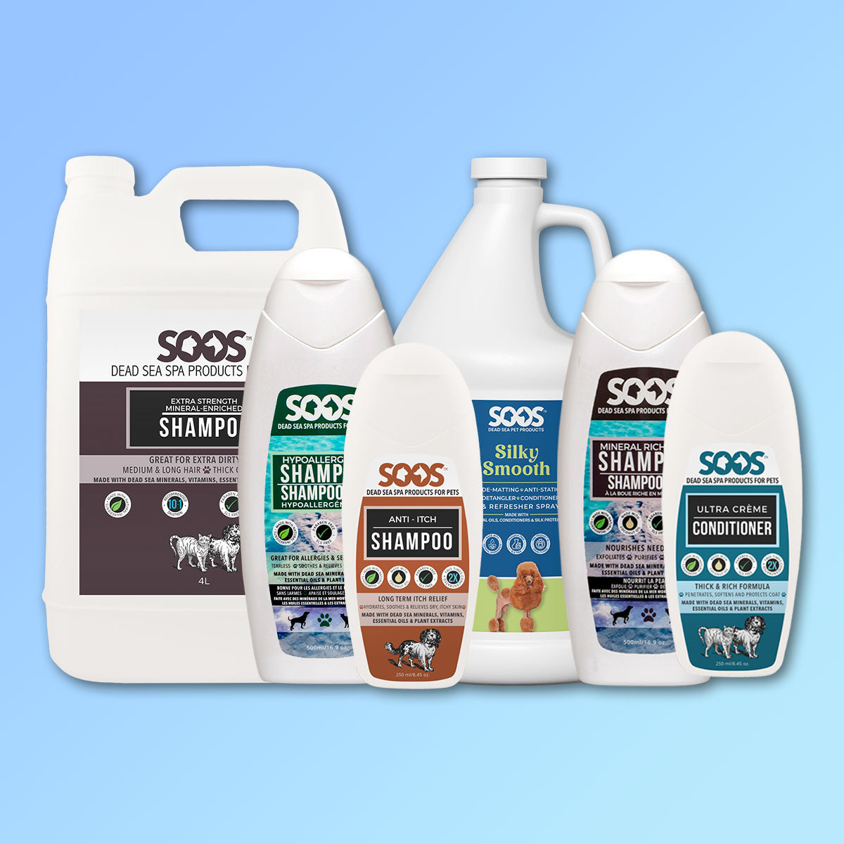 Welcome to the pioneering world of Soos™ Dead Sea Spa Products for Pets, where in every bottle there is a splash of natural wonder! We’re proud to be North America’s first pet care line infused with the magic of Dead Sea minerals. Think of it as a mineral makeover, where essential oils, vitamins, and a cornucopia of plant extracts come together in perfect harmony. Sourced directly from the Dead Sea, our ingredients boast a special blend of 12 essential vitamins that you won’t find anywhere else on the globe.